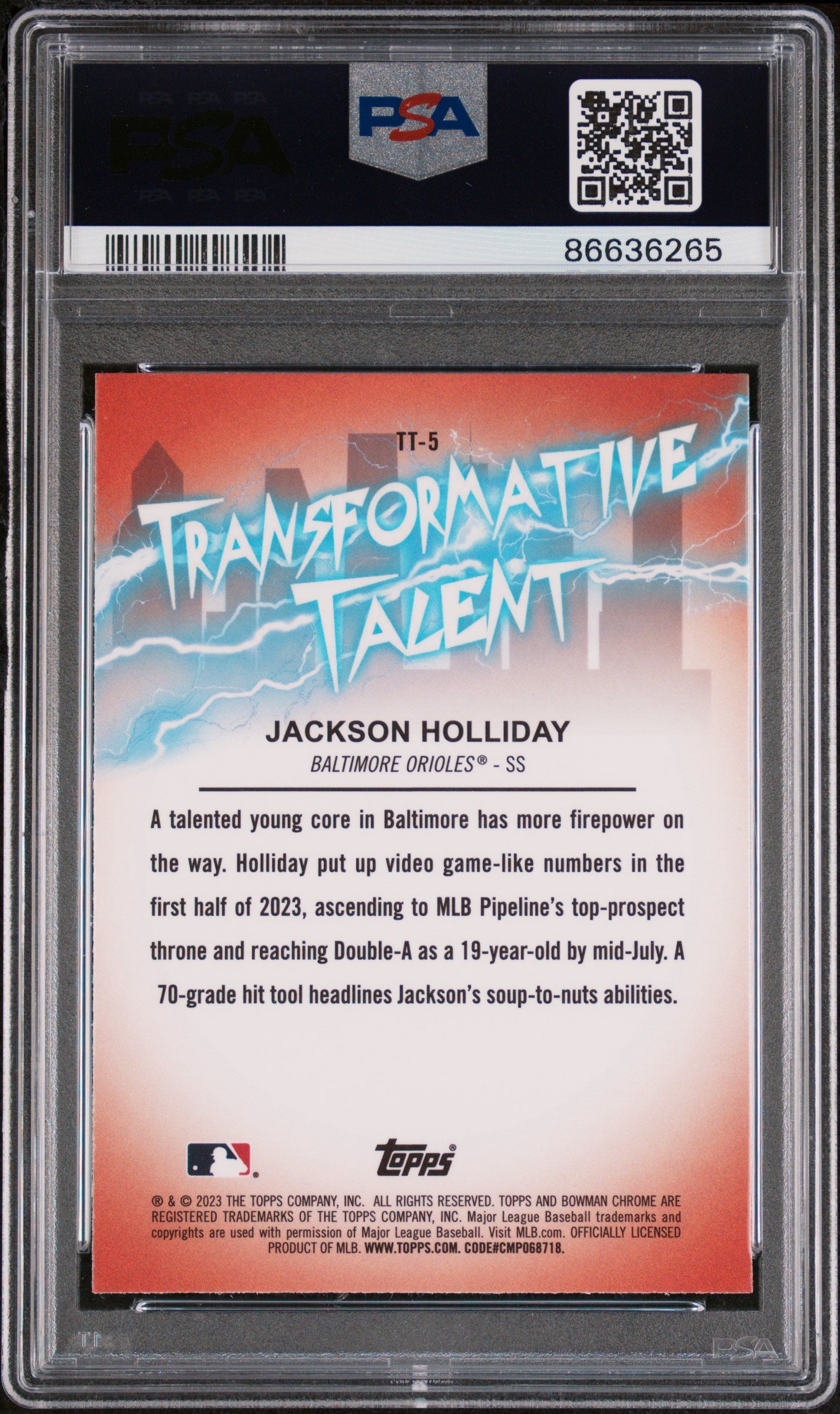 2023 BOWMAN DRAFT TRANSFORMATIVE TALENT JACKSON HOLLIDAY #TT5 - PSA 9 ROOKIE CARD
