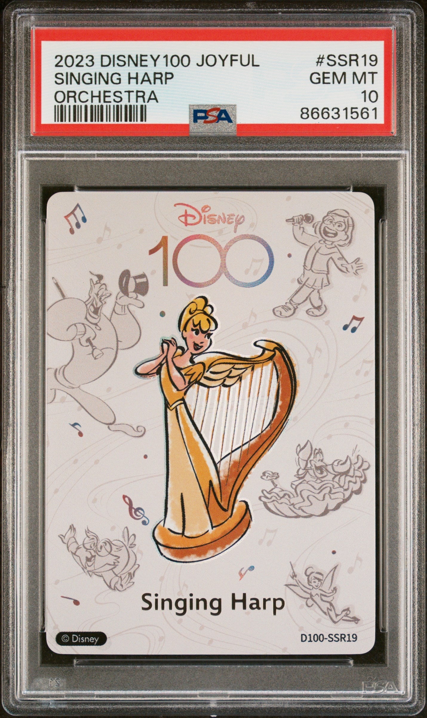 2023 CARD FUN DISNEY 100 JOYFUL ORCHESTRA SINGING HARP SSR19 PSA 10