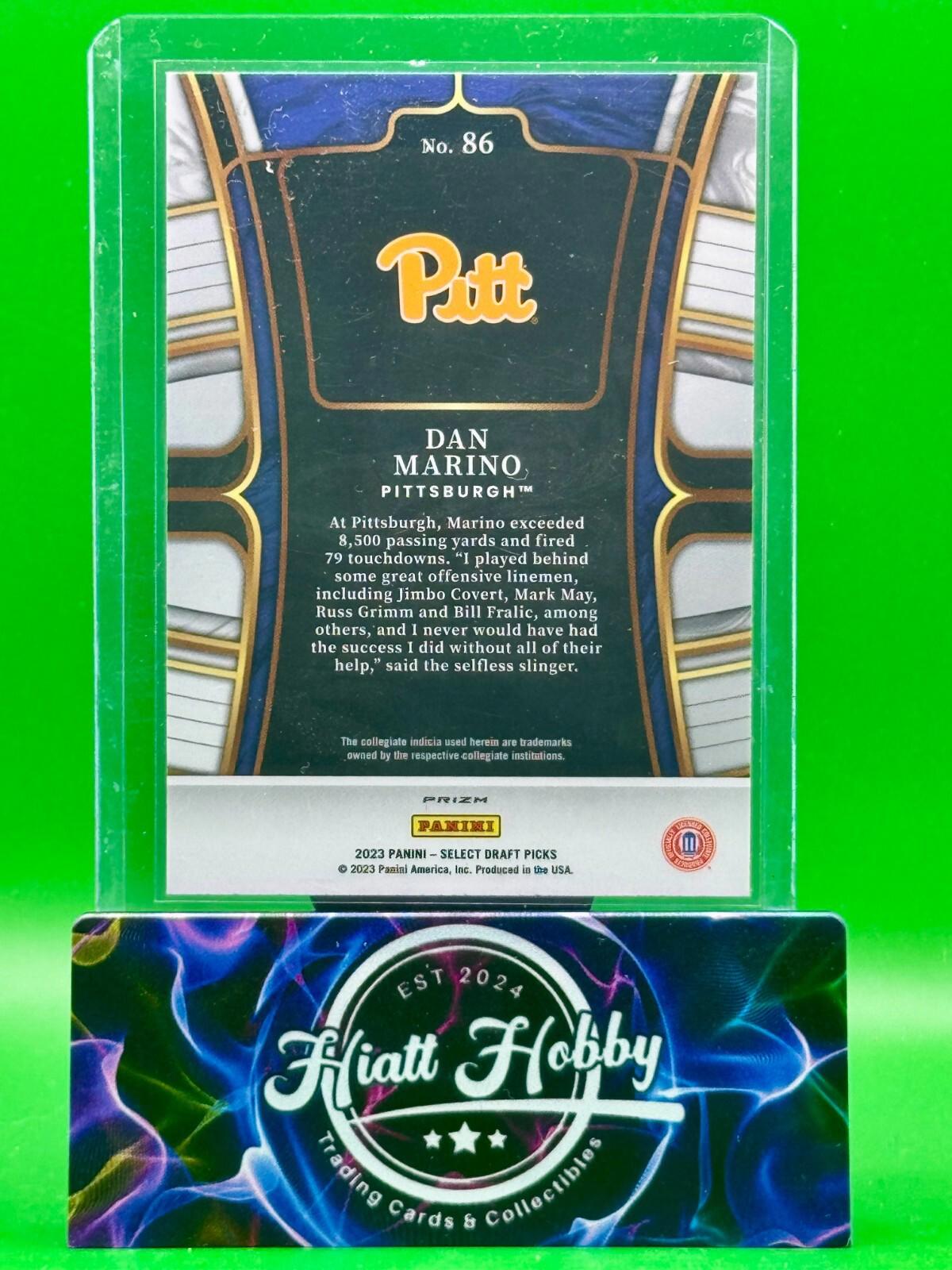 Elevate your football card collection with the 2023 Panini Select Draft Picks - Concourse Dan Marino #86 Red Lazer Prizm. This eye-catching card features the legendary Dan Marino, captured in his Pitt Panthers glory, and it's a must-have for enthusiasts and collectors. Proudly presenting the Red Lazer Prizm variety, this card shimmers with a unique parallel finish that stands out from the crowd.Crafted with care by Panini, the 2023 Prizm Draft Picks set is a testament to excellent sports memorabilia. This standard-sized, English-language card is a genuine piece of sports history, highlighting a standout season and the illustrious Super Bowl event. Celebrate the spirit of the game and cherish this non-autographed original that's made in the USA.