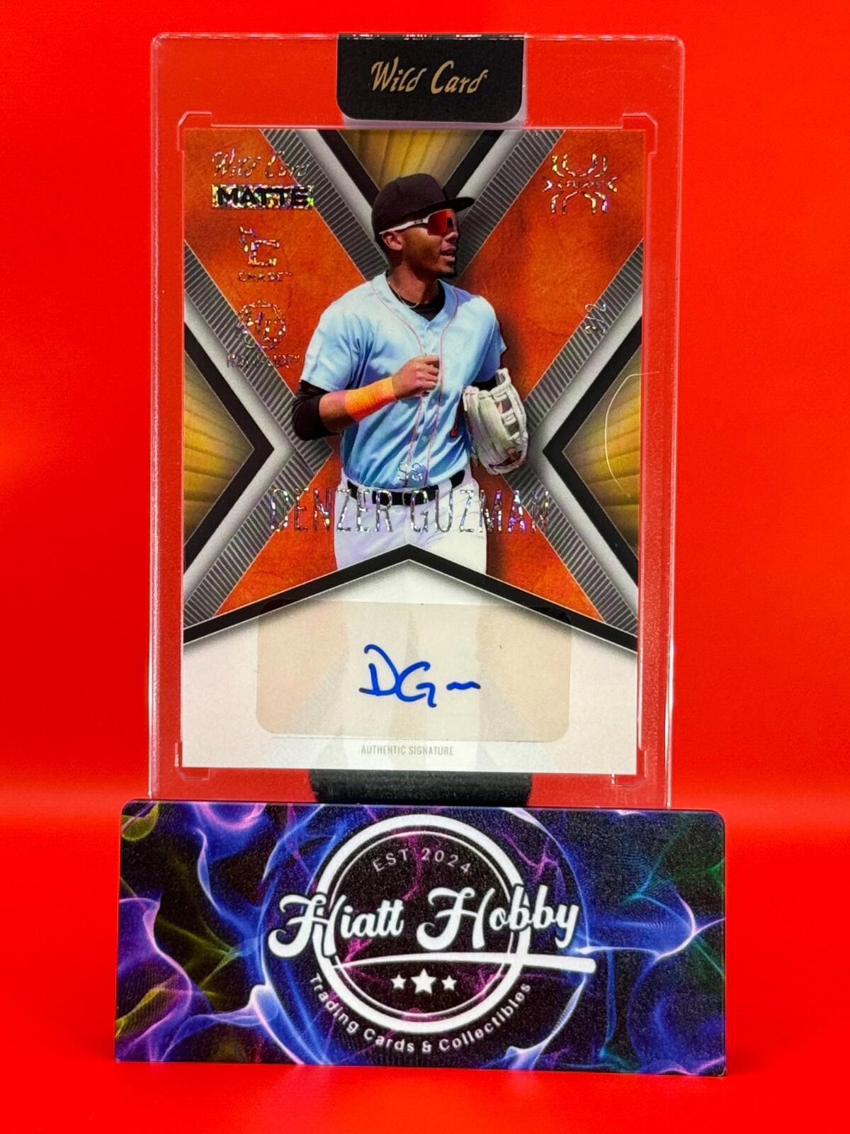 Capture the essence of baseball's future with the 2024 Wild Card Matte Baseball card featuring Denzer Guzman of the Los Angeles Angels. This exclusive collectible, card number MXPA-DG, is part of the coveted Gold X-Plode Holo-Lux insert set, showcasing a striking red parallel variety that stands out in any collection. Autographed by Denzer Guzman himself, this card is authenticated with a label or sticker autograph format, ensuring its legitimacy and value. Serial numbered as a one-of-a-kind piece, it embodies the spirit of the MLB World Series event. Proudly manufactured in the United States, this card is a must-have for enthusiasts and collectors alike.
