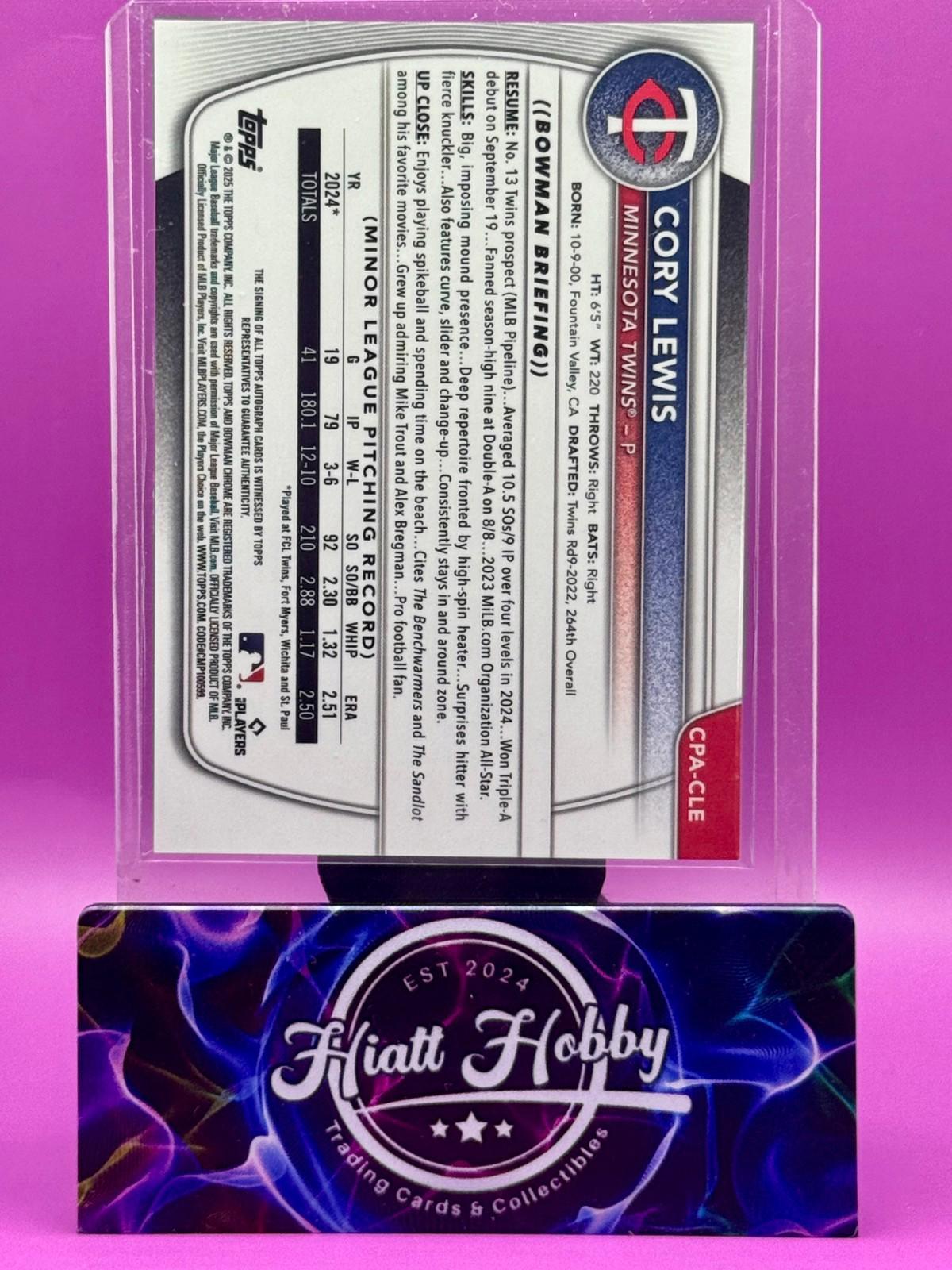 2025 Bowman Chrome - Cory Lewis #CPA-CLE Speckle Refractor Auto /299 (AU, RC)