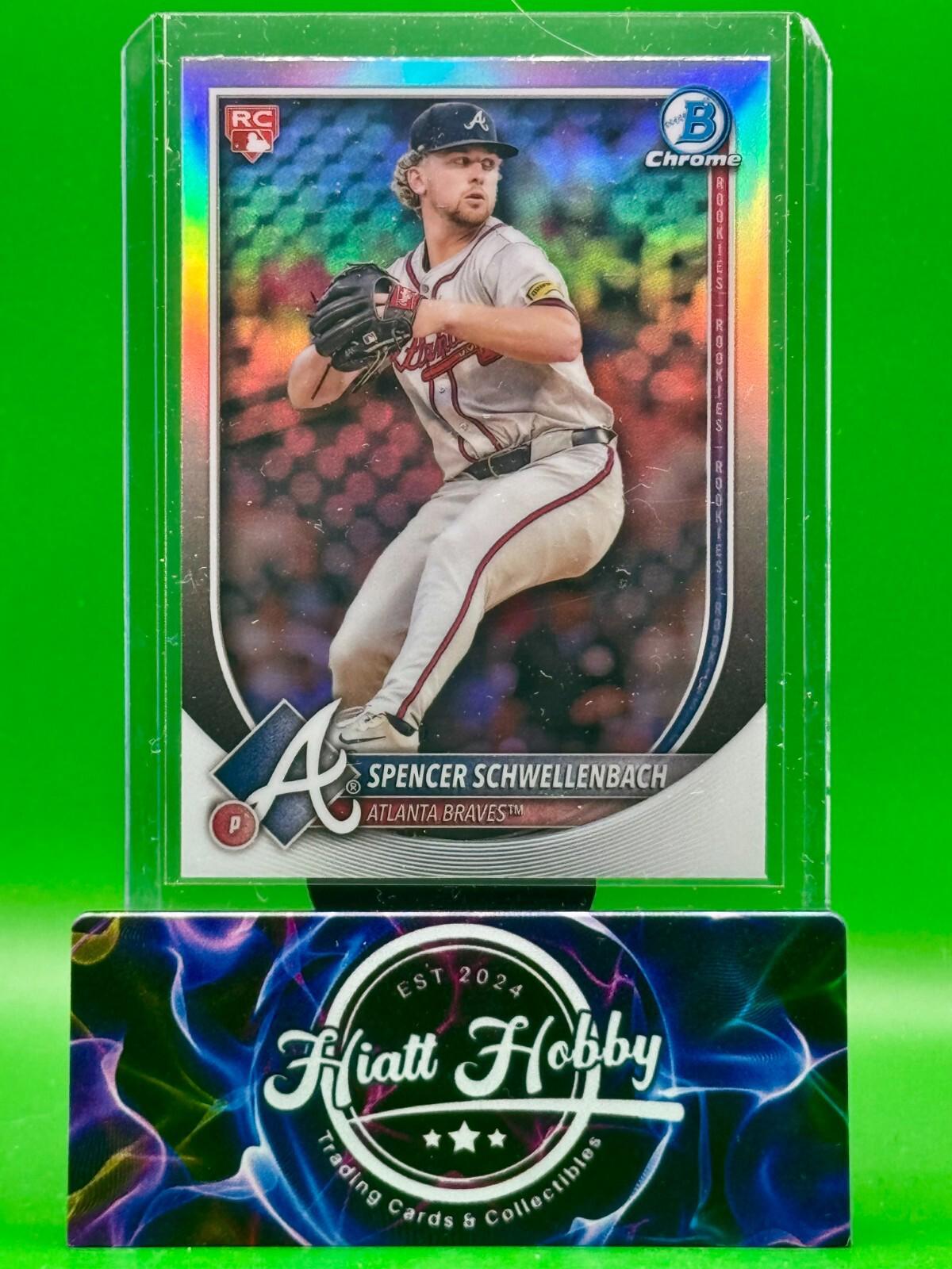 Capture the excitement of the diamond with this 2025 Bowman Chrome Spencer Schwellenbach Red RC Refractor card. Showcasing the Atlanta Braves' promising talent, this card is a vibrant testament to Schwellenbach's rookie year. With its eye-catching chrome finish and the prestige of the Major League Baseball, this collectible is a must-have for enthusiasts and fans.Strategically crafted by Topps, the card #78 from the 2025 set is a celebration of the MLB World Series season. As an original, non-autographed piece, it's a genuine slice of baseball history. The card's standard size and English language make it a familiar addition to any collection, while its Red Rookie Redemption feature marks it as a standout piece.