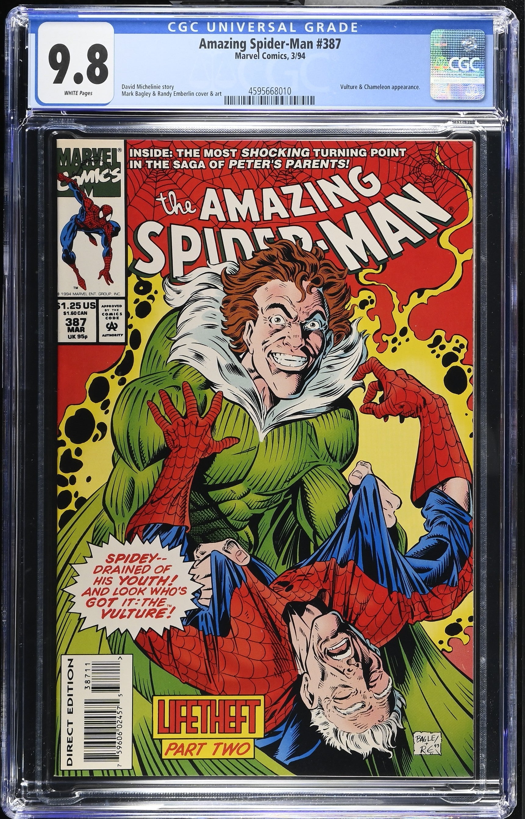 Amazing Spider-Man #387 from 3/94 offers a glimpse into the era's iconic storytelling. Featuring vulture & chameleon appearance., this issue is a must-have for collectors. Add this CGC 9.8 graded comic to your collection today!