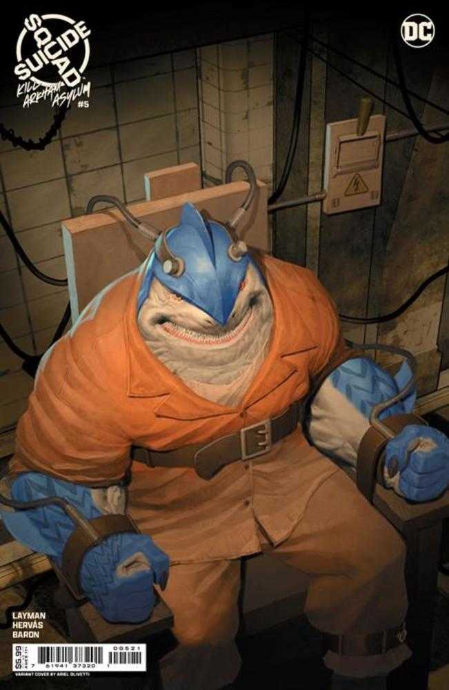 He may have the sharpest teeth in the sea, but he's not the sharpest tool in the shed. Talkin' 'bout King Shark, who's been locked away in Arkham where Amanda Waller has taken an extra-special interest in him. Now there's a full-scale riot going on, and King Shark knows Waller is behind it. Can he survive the blood frenzy long enough to figure out her master plan? The prequel to Rocksteady’s Suicide Squad: Kill the Justice League comes to its epic conclusion. Read the book, then play the game! Each print issue includes a redeemable code for a bonus digital doll in Suicide Squad: Kill the Justice League inspired by the comics. Get the new Clayface digital doll with issue #4. Paying subscribers with a DC UNIVERSE INFINITE Annual or Ultra subscription (U.S. only) who read the digital issues of Suicide Squad: Kill Arkham Asylum will also receive these bonus digital codes.